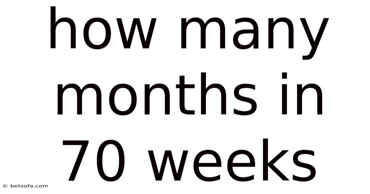 Q: Is 70 weeks exactly 16 months? A: Not exactly. 70 weeks is approximately 16.09 months, or about 16 months and 3 days, based on the average month length.