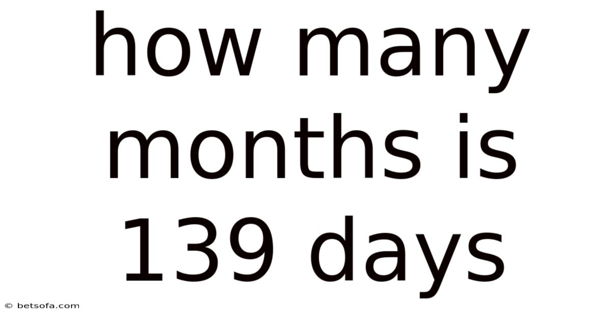 Q: How many months is 139 days exactly? A: Using the average month length of 30.44 days, 139 days is about 4.57 months, or 4 months and 17-18 days Small thing, real impact..