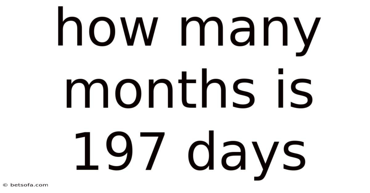 1. How many months is 197 days exactly? 197 days is approximately 6.47 months when using the average month length of 30.44 days. Still, the exact number can vary depending on the specific months involved.