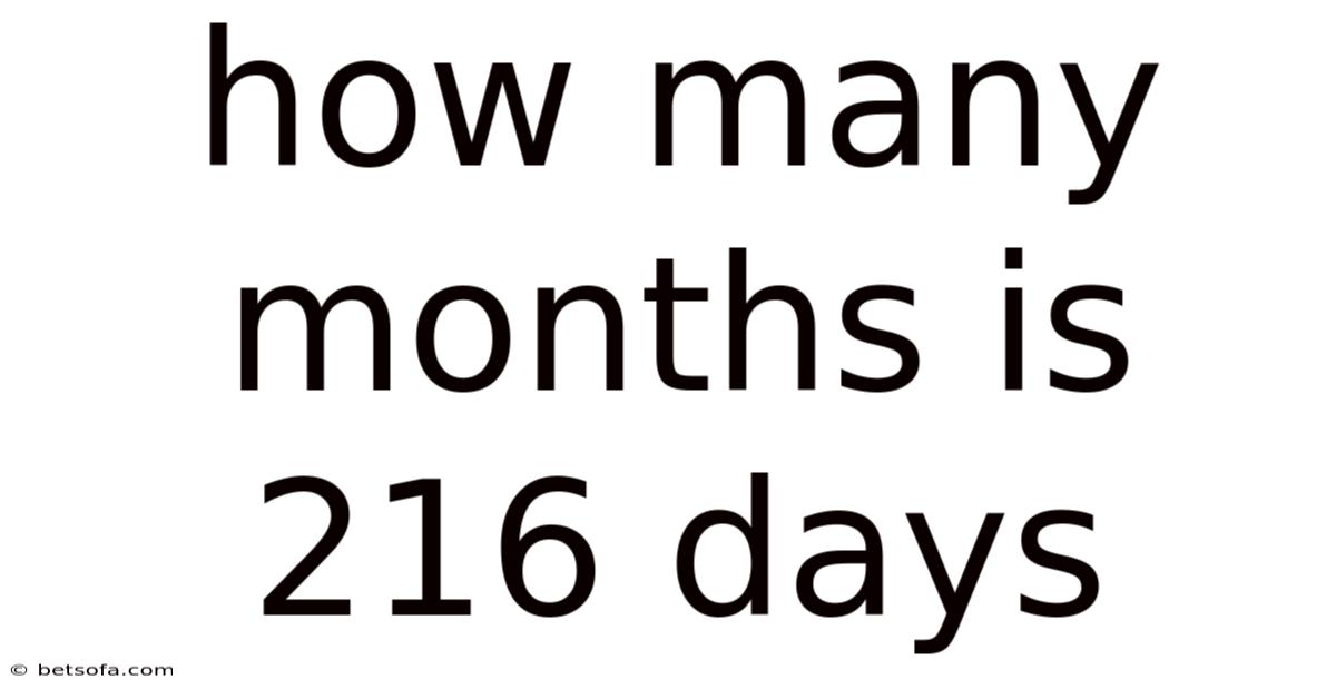 Have you ever found yourself staring at a calendar, trying to figure out how many months a stretch of days really covers? In practice, whether you’re planning a vacation, budgeting for a project, or simply curious about time conversions, understanding how to translate days into months can be surprisingly handy. ”** by breaking down the math, examining real‑world contexts, and clarifying common pitfalls. In this article we’ll explore the question **“How many months is 216 days?By the end, you’ll not only know the answer but also feel confident converting any number of days into months on your own.