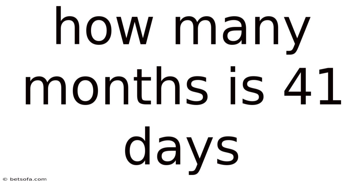 While the question "How many months is 41 days?" may seem straightforward, it reveals the complexity of our calendar system. Because of that, the answer ranges from approximately 1 month and 10 days to 1 month and 12 days depending on the specific months in question. Rather than seeking a single definitive answer, it's more useful to understand the principles behind the calculation.