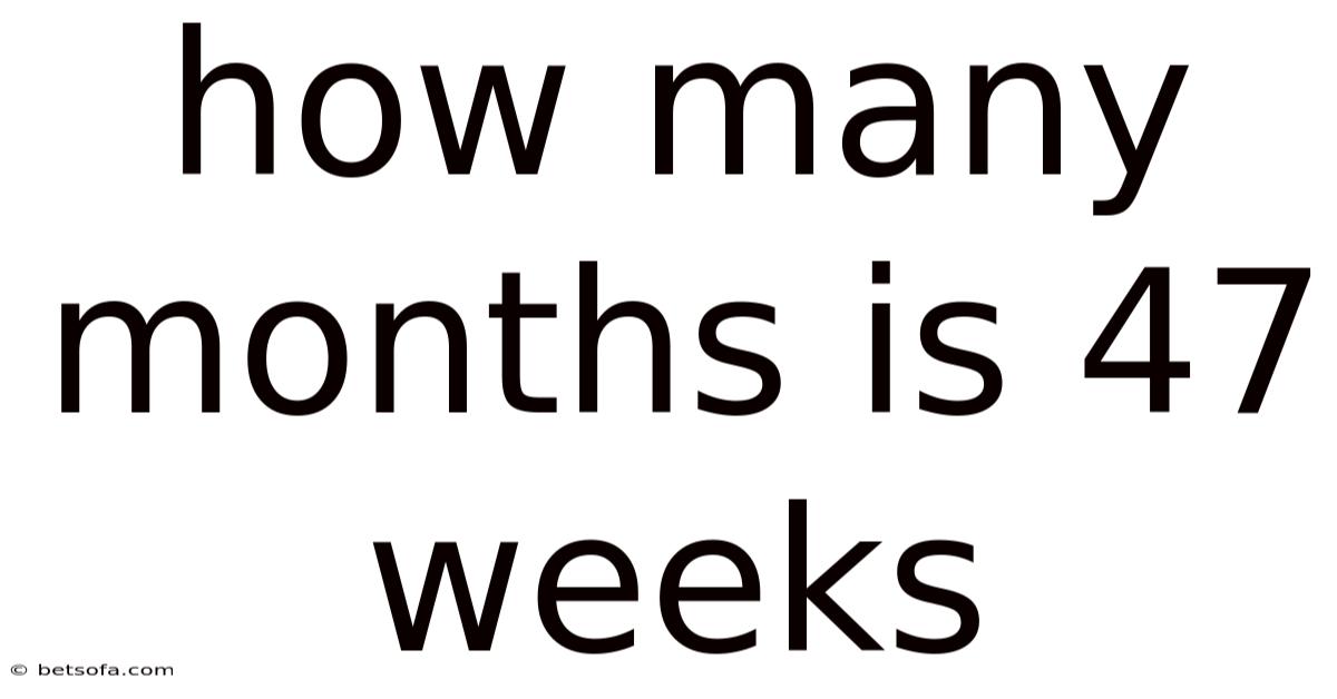 Once you hear a time span expressed in weeks, it’s easy to picture a calendar filled with Saturdays and Sundays. By the end, you’ll be able to answer the question “how many months is 47 weeks?Converting weeks to months isn’t as straightforward as multiplying by 4, because months vary in length from 28 to 31 days. But what if you need to translate 47 weeks into months for a school project, a pregnancy tracker, or a work schedule? On top of that, this article walks you through the exact calculation, explains why the answer can differ slightly depending on the method you choose, and shows how to apply the conversion in real‑world situations. ” with confidence and understand the nuances behind the numbers It's one of those things that adds up..