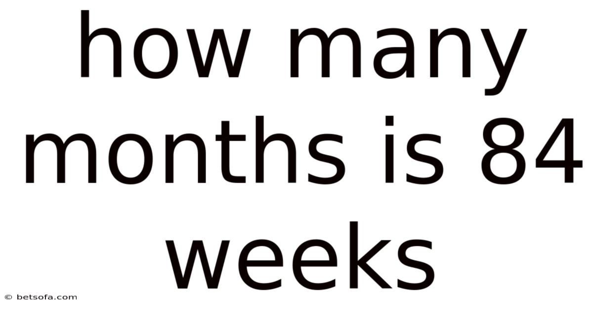 To translate 84 weeks into months, we must first decide which definition of “month” we will employ. Two common conventions are used in everyday calculations:
