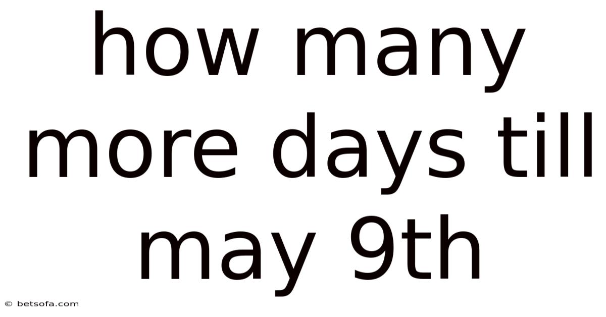 Knowing how to calculate "how many more days till May 9th" is a valuable skill that serves both practical and personal purposes. Whether you are preparing for a celebration, planning an event, or simply looking forward to a significant date, understanding the various methods for calculating this countdown allows you to determine the exact number of days remaining with precision and confidence Practical, not theoretical..
