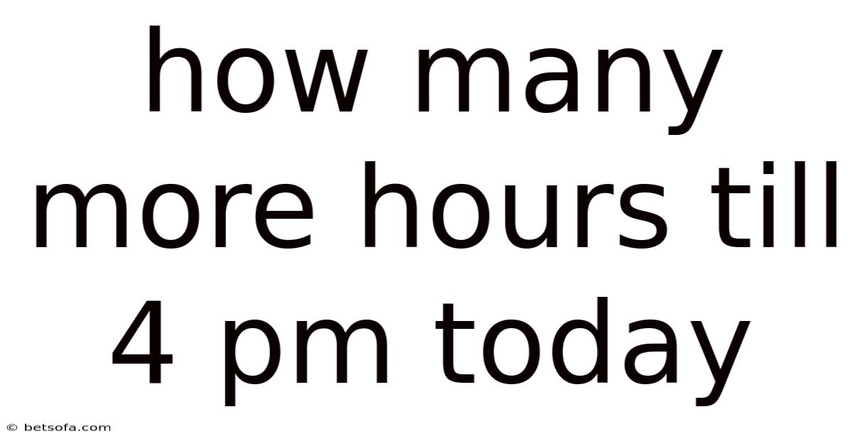 Imagine you glance at the clock, notice that it’s already 2:30 PM, and wonder, “*How many more hours till 4 PM today?In practice, *” This seemingly simple question pops up countless times a day—in offices, classrooms, and homes—yet answering it accurately requires a clear grasp of basic time‑keeping concepts. In this article we’ll break down exactly how to calculate the remaining hours and minutes until 4 PM, explore why the answer can differ depending on the time‑zone or daylight‑saving adjustments, and provide step‑by‑step methods you can use instantly. By the end, you’ll be able to answer the question confidently, whether you’re planning a meeting, setting a timer for a workout, or just satisfying a moment of curiosity.