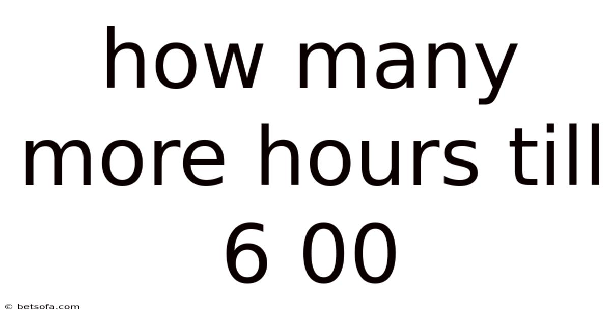 The main keyword here is "how many more hours till 6:00 PM?" This question is crucial for individuals aiming to optimize their schedules. Whether you’re a student, a professional, or a parent, understanding this concept can save you from last-minute stress and enhance your productivity. Let’s dive into the details and uncover the answer to this common query Worth knowing..
