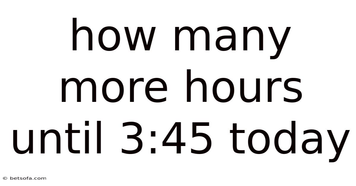 Ever find yourself staring at the clock and wondering, “how many more hours until 3:45 today?” Whether you’re planning a meeting, setting a reminder, or simply curious about the passage of time, knowing how to calculate the remaining hours to a specific moment is a handy skill. In this article we’ll break down the concept of time difference, walk through step‑by‑step calculations, and explore real‑world examples that illustrate why this seemingly simple question can be surprisingly useful. By the end, you’ll be able to answer the question confidently, no matter what time of day it is Surprisingly effective..