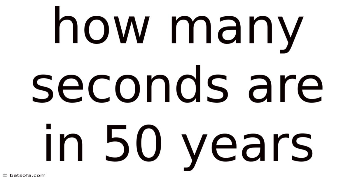 Q: Can the number of seconds in 50 years vary? A: Yes, slightly. The exact number depends on the specific years considered, as some 50-year periods may include more or fewer leap years.