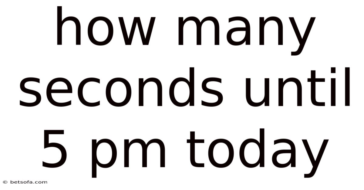 Can I use an online tool to calculate seconds until 5 PM? Yes, numerous online calculators and smartphone apps can provide an instant countdown to 5 PM or any other specified time. These tools automatically account for the current time and can provide second-by-second updates. Many clock apps and websites offer this functionality for free It's one of those things that adds up. Worth knowing..