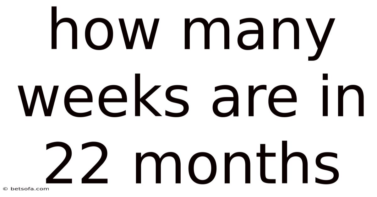 Q: Is there a simple way to estimate the number of weeks in 22 months? A: Yes, you can multiply 22 by the average number of weeks in a month (approximately 4.345), which gives about 95.6 weeks.