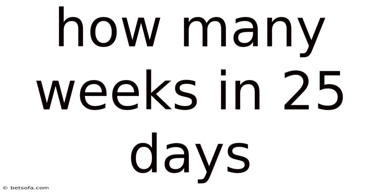 - Remaining days: Days 22‑25 (4 days) This breakdown makes it clear that how many weeks in 25 days equals three complete weeks plus a short fourth segment.