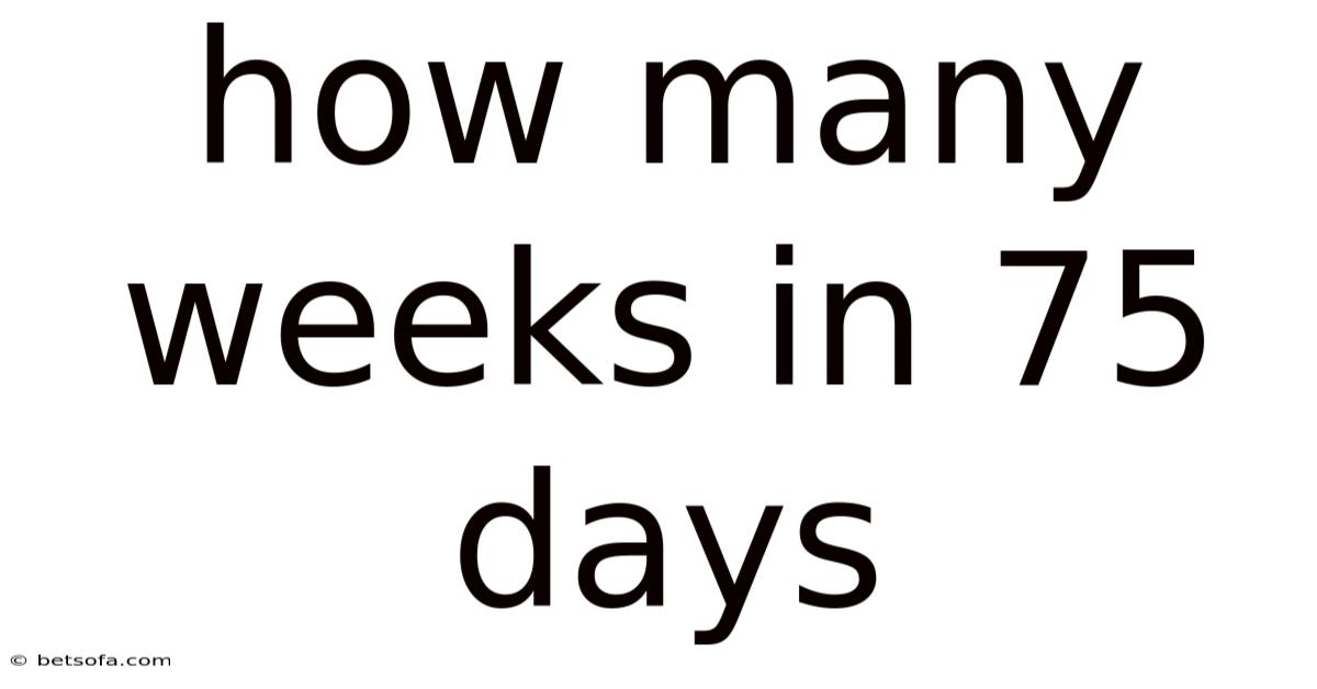 When you glance at a calendar and see a stretch of 75 days, the first question that often pops up is: how many weeks does that actually represent? Understanding the relationship between days and weeks is more than a simple arithmetic exercise—it’s a practical skill that shows up in project management, health tracking, academic planning, and even everyday budgeting of time. In this article we will unpack the conversion from days to weeks, explain why the answer isn’t always a neat whole number, and illustrate the concept with real‑world scenarios that make the math feel relevant. By the end, you’ll not only know the exact figure for 75 days, but you’ll also grasp the underlying principles that govern any similar time‑unit conversion.