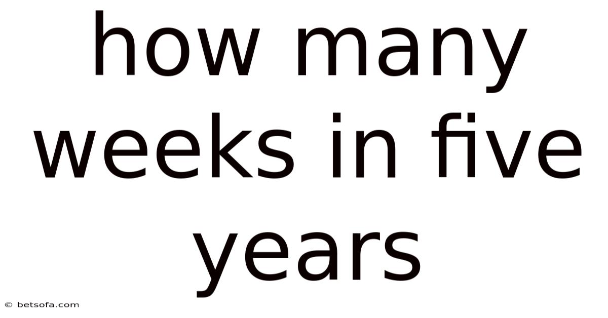 When including partial weeks, five years actually spans approximately 260.Which means if we count every week that begins during the five-year period (even if it doesn't complete within that period), we get closer to 261 weeks. 7 to 261 weeks, depending on the specific years and how you count the remaining days. For planning purposes, most people work with 260 weeks as the base number and account for the remaining days separately.