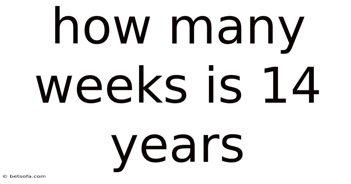 Q: How many weeks are in 14 years exactly? A: Approximately 730 to 731 weeks, depending on the number of leap years in the period.