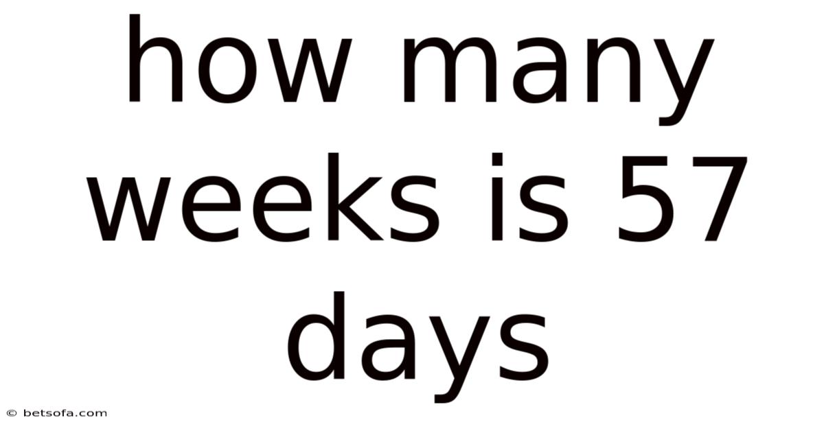 [ \frac{57\text{ days}}{7\text{ days/week}} = 8.142857\ldots\text{ weeks} ]