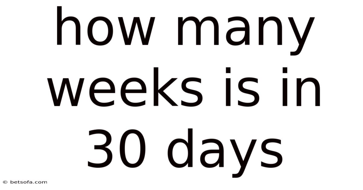 Q1: Is 30 days exactly 4 weeks? A1: No, 30 days is not exactly 4 weeks. It is 4 weeks and 2 days, or approximately 4.29 weeks.