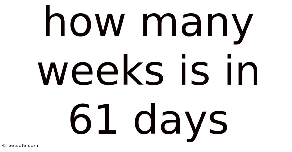 Understanding how many weeks are in 61 days is a practical and useful skill, especially when planning projects, scheduling events, or managing time effectively. Consider this: this article will explore the relationship between days and weeks, break down the calculation process, and provide real-world examples to illustrate how this knowledge can be applied. Whether you're a student, a professional, or simply someone looking to improve their time management skills, this guide will help you confidently convert days into weeks and vice versa.