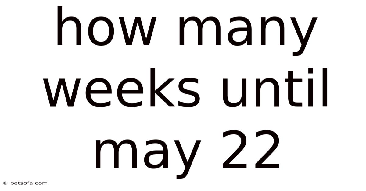 The keyword "how many weeks until May 22" is crucial here, as it helps individuals and businesses set realistic expectations and manage their schedules accordingly. Whether you're planning a personal milestone, a business launch, or a community event, knowing the number of weeks left can be a something that matters. This article will guide you through the steps to calculate this effectively and highlight the real-world implications of time management.