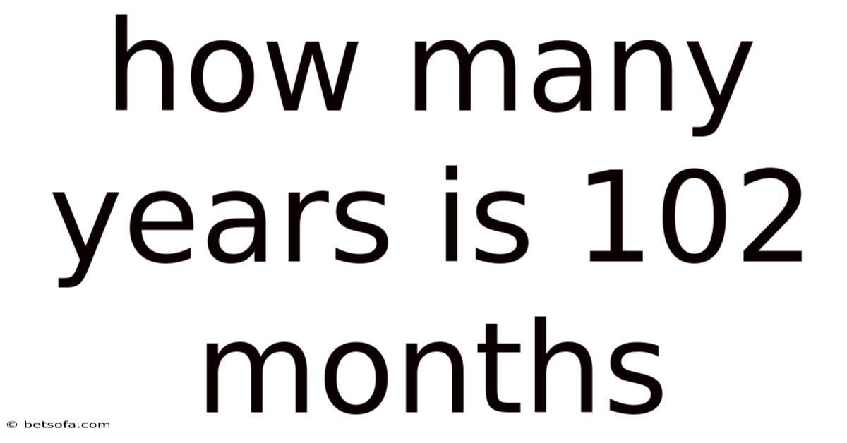 Q: Is 102 months exactly 8.5 years? A: Yes, 102 months divided by 12 equals 8.5 years, which is equivalent to 8 years and 6 months.