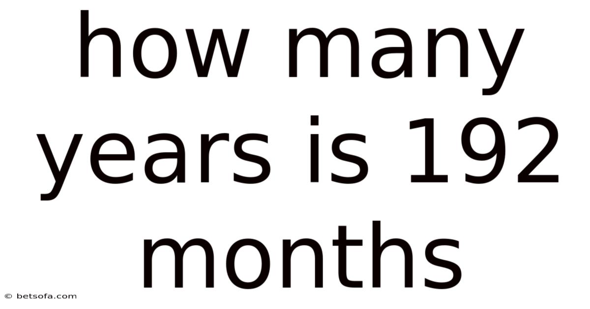 Understanding this conversion is more than a simple arithmetic exercise; it helps you grasp the scale of time in everyday contexts. But for instance, a 192‑month contract might sound abstract, but when you translate it into years you instantly see that it spans 16 years—a significant portion of a person’s professional life or a generation in business planning. Recognizing the magnitude of such periods aids in decision‑making, risk assessment, and financial forecasting Simple as that..