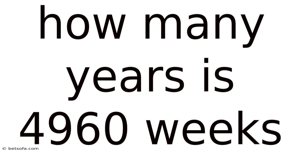 Understanding time conversions can be both fascinating and practical, especially when dealing with large numbers like 4960 weeks. Whether you're planning a long-term project, calculating age, or simply curious about how time adds up, knowing how to convert weeks into years can provide valuable perspective. In this article, we'll explore exactly how many years 4960 weeks equals, break down the calculation, and discuss why such conversions matter in everyday life Small thing, real impact..