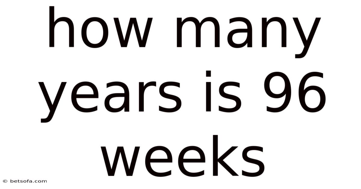 Using the average year length of 365.25 days, 96 weeks equals 672 days, which divides to 1.84 years (approximately 1 year and 10 months).