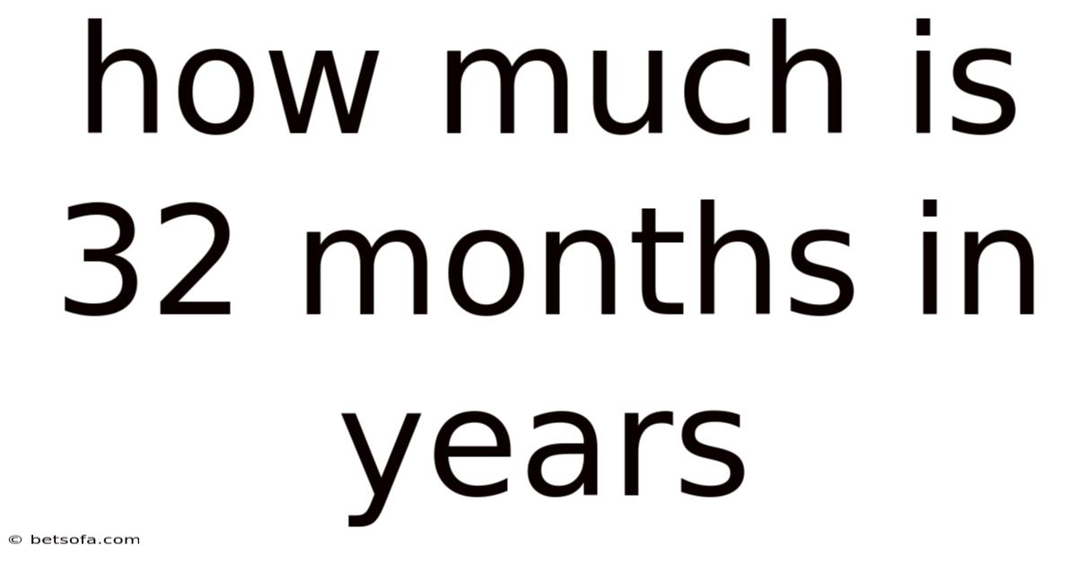 Thus, 32 months = 2 years and 8 months. If you prefer a decimal expression, it is approximately 2.67 years (rounded to two decimal places).