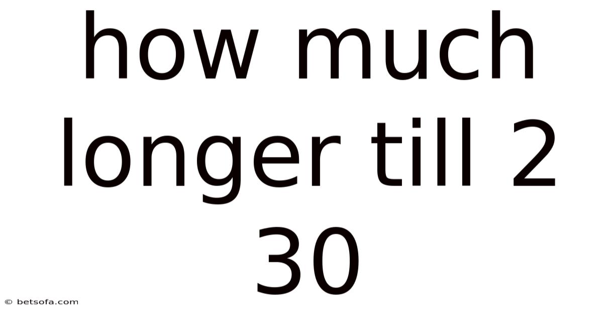 Knowing "how much longer till 2:30" is a simple yet vital skill that helps us handle our daily schedules and manage our time effectively. Whether you're waiting for an event, planning your day, or just curious, being able to quickly and accurately calculate the time remaining is a practical application of basic math and time awareness. By understanding the context, using clear steps, and avoiding common mistakes, you can always provide the right answer and stay on top of your commitments. Time is a constant companion in our lives—learning to measure and anticipate it empowers us to live more organized and less stressful lives That's the part that actually makes a difference..