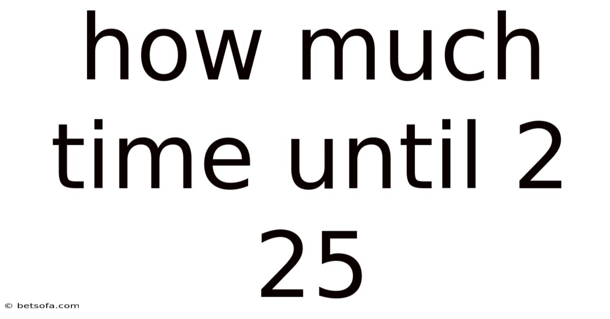 The phrase "how much time until 2:25" is a straightforward yet intriguing question that many of us find ourselves asking at various points in our daily lives. Whether it's the time until the next meeting, the moment when a movie you've been eagerly anticipating starts, or the hour when you plan to take a well-deserved break, the countdown to 2:25 can be a central moment. That said, this article aims to explore the concept of time measurement in a detailed and engaging manner, shedding light on how we perceive and calculate time intervals. By understanding the intricacies of time, we can better appreciate the fleeting nature of moments and the importance of punctuality in our lives Not complicated — just consistent. But it adds up..