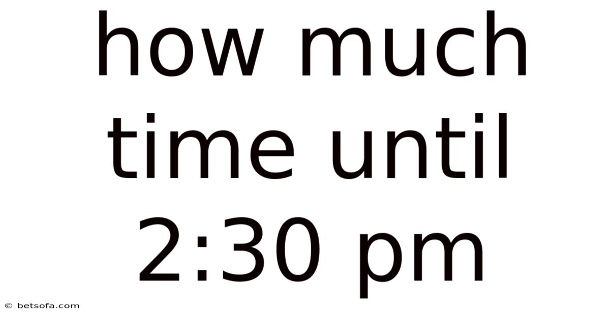 Ever glanced at the clock and wondered, “how much time until 2:30 pm?” Whether you’re racing to a meeting, planning a study session, or simply curious about the minutes ticking away, figuring out the interval until a specific time is a practical skill we use every day. On the flip side, in this article we’ll break down the process of calculating the remaining time until 2:30 pm, explore the underlying concepts of the 12‑hour clock, and give you tools to avoid common pitfalls. By the end, you’ll be able to answer that question instantly—no mental gymnastics required Most people skip this — try not to. Surprisingly effective..