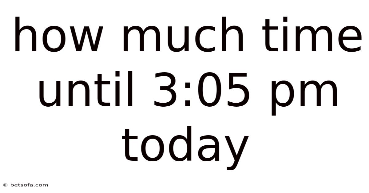 Understanding how much time until 3:05 PM today is more than a simple glance at the clock; it is a practical exercise in time awareness, planning, and productivity. Whether you are preparing for an afternoon meeting, coordinating a pickup, or simply organizing your daily workflow, knowing the precise remaining time helps you allocate attention, reduce stress, and make intentional decisions. In practice, this concept blends basic time calculation with real-world application, turning an ordinary question into a tool for better daily management. By learning how to calculate and interpret this interval accurately, you gain control over your schedule and avoid the pitfalls of rushed or wasted moments Less friction, more output..