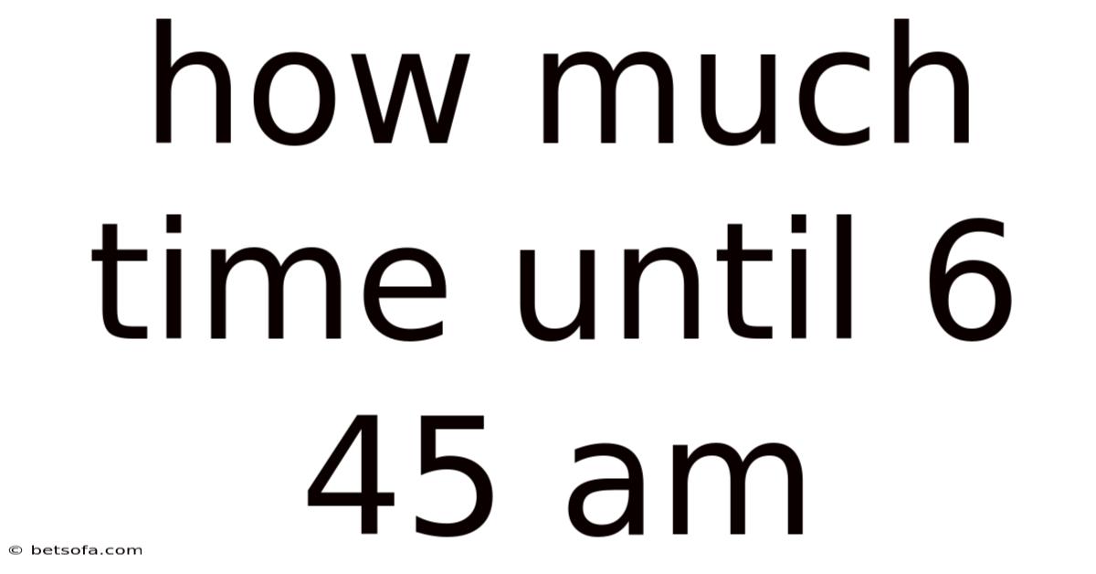 When someone asks how much time until 6:45 am, they are seeking the time interval—the number of hours and minutes (and optionally seconds) that will elapse before the clock reaches 6:45 am on the upcoming day. The phrase does not refer to a duration that has already passed; it is forward‑looking.