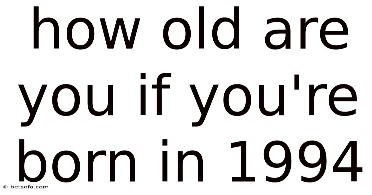 When we ask about the age of someone born in 1994, we’re not just calculating a timestamp. Day to day, we’re diving into a narrative shaped by historical events, technological advancements, and personal milestones. The answer to this question is not just a number but a reflection of the journey that has been lived since that year. Whether you're curious about your own life stage or interested in the broader implications, this guide will provide a thorough exploration of what it means to be 30 years old in 1994 Nothing fancy..