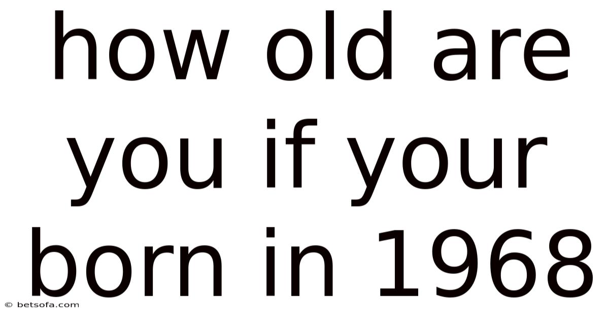 Have you ever wondered how old you are if you were born in 1968? This article walks you through that calculation in detail, explores the nuances that can change the result, and shows why understanding the mechanics of age‑determination matters—from planning retirement to celebrating milestone birthdays. It sounds like a simple arithmetic problem, but the answer can shift depending on the exact date you’re asking, the calendar system you use, and even cultural conventions about age counting. Even so, in everyday conversation, most people calculate age by subtracting the birth year from the current year and then adjusting for whether the birthday has already occurred this year. By the end, you’ll be able to answer the question confidently for any given day in 2024 (or any other year) and appreciate the broader context behind a seemingly trivial number.