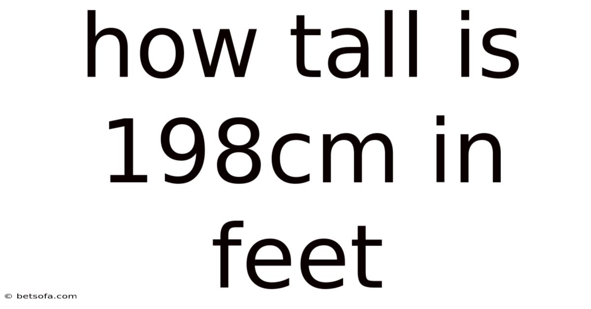 - Which means, 198 cm is approximately 6 feet and 5.95 inches. For everyday conversation, this is rounded to 6 feet 6 inches (often written as 6'6").
