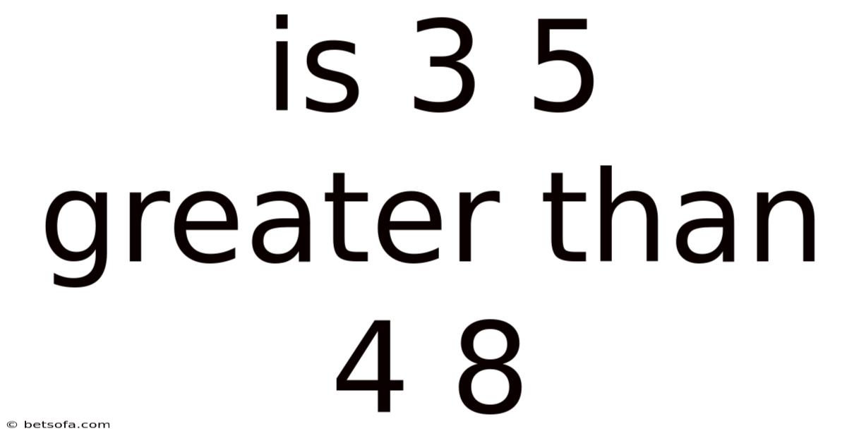 From a mathematical theory perspective, fractions are rational numbers, and their comparison is based on their position on the number line. The fraction 3/5 is equivalent to 0.6, which lies to the right of 0.5 (the decimal equivalent of 4/8) on the number line. This means 3/5 is greater.