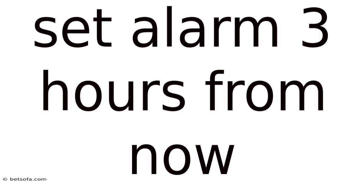 In today’s fast‑paced world, managing time effectively can feel like juggling flaming torches while walking a tightrope. One of the simplest yet most powerful tools in our digital arsenal is the alarm—a tiny digital prompt that can pull us out of a coffee‑induced haze, remind us of an upcoming meeting, or simply signal the end of a focused work sprint. When you need a precise reminder that is exactly three hours from now, the process may seem straightforward, but a deeper look reveals several nuances that can make the difference between a reliable cue and a missed deadline. This article walks you through everything you need to know about setting an alarm three hours from the present moment, from the basics of built‑in smartphone clocks to advanced automation tricks, common pitfalls, and best‑practice tips that keep you on schedule every single time Still holds up..