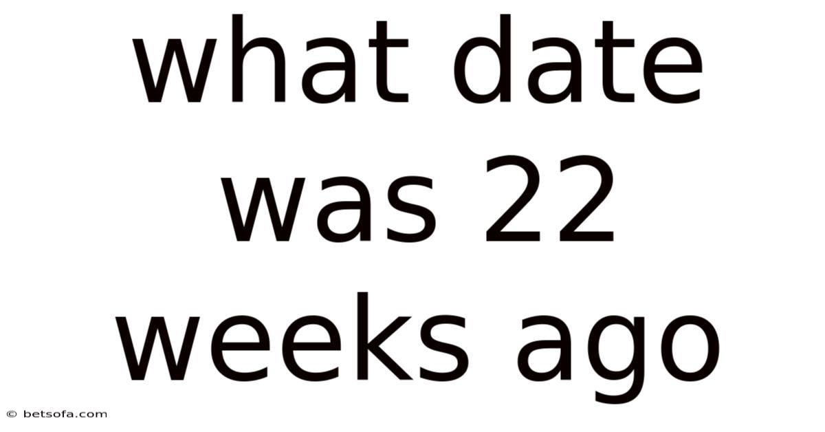If you're wondering what date was 22 weeks ago, you're likely trying to calculate a past date for personal, professional, or legal purposes. Understanding how to determine this date is essential for planning, record-keeping, or simply satisfying curiosity. In this article, we'll break down exactly how to calculate the date that was 22 weeks ago, explain the significance of such calculations, and provide practical examples to help you apply this knowledge in real-life situations Nothing fancy..