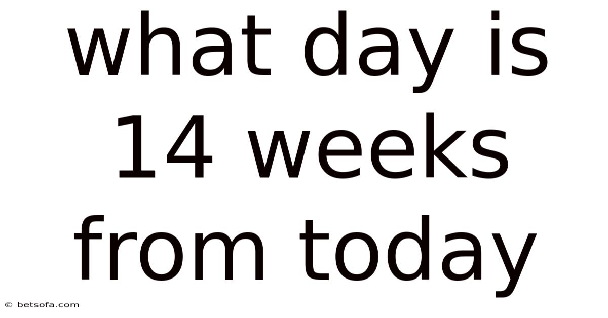 Q1: What day is 14 weeks from today if today is a Friday? A1: If today is a Friday, 14 weeks from now will also be a Friday. The exact date will depend on the current month and year.