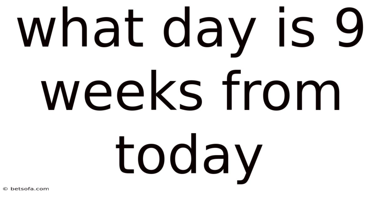 Q: How do I calculate 9 weeks from today if I don't have a calendar? A: Multiply 9 by 7 to get 63 days, then add 63 days to today's date. You can count on your fingers or use a simple date calculator app.