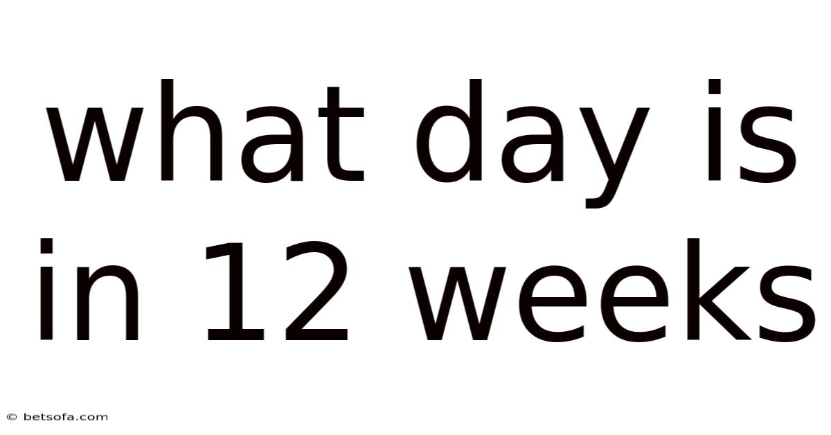 If you've ever found yourself wondering, "What day is in 12 weeks?This is a common question that arises in planning, scheduling, and even casual curiosity. And " you're not alone. Which means whether you're planning an event, tracking a project timeline, or simply curious about the future date, knowing how to determine the day of the week in 12 weeks can be incredibly helpful. Understanding how to calculate the day of the week 12 weeks from now is not only useful for personal organization but also essential in professional and academic settings. In this article, we'll explore the methods to calculate this, the significance of the 12-week timeframe, and provide practical examples to ensure you can confidently answer this question anytime it comes up.