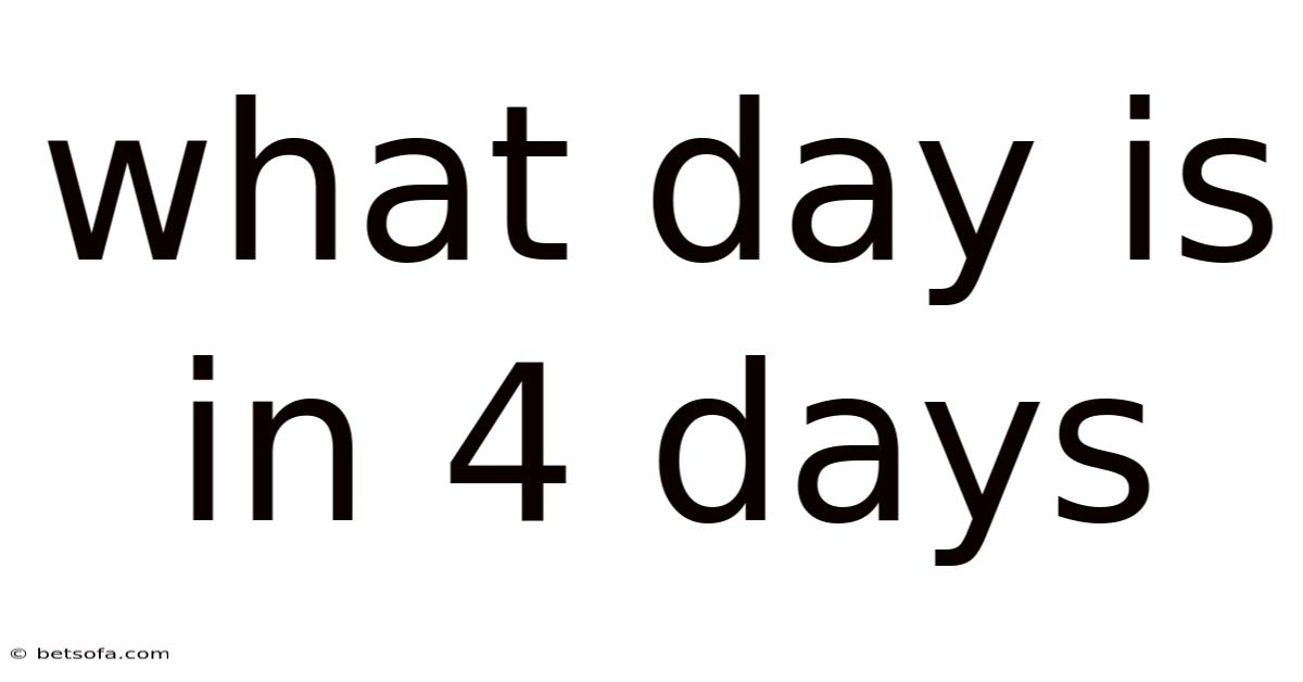 The question "What day is in 4 days?In real terms, " is a common one that arises in everyday life, whether for planning, scheduling, or simply satisfying curiosity. So understanding how to calculate the day of the week a few days from now is a fundamental skill that relies on basic arithmetic and knowledge of the weekly calendar cycle. Think about it: this article will explore the concept in detail, offering a comprehensive explanation of how to determine the day of the week that falls four days from any given date. We'll also break down the reasoning behind the calculation, provide practical examples, and address common misconceptions.