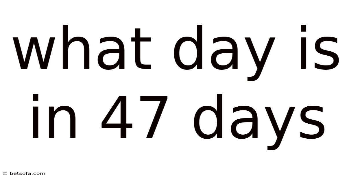 Planning ahead often requires knowing exactly what day of the week a future milestone will fall on. In real terms, whether you are scheduling a project deadline, counting down to a vacation, tracking a fitness goal, or coordinating a recurring meeting, asking what day is in 47 days is far more than a casual calendar check. It is a practical exercise in time management, numerical reasoning, and forward planning that helps individuals and organizations align their routines with predictable weekly cycles. Understanding how to calculate this manually empowers you to work independently of digital tools while building a stronger intuitive grasp of how time is structured Worth keeping that in mind..
