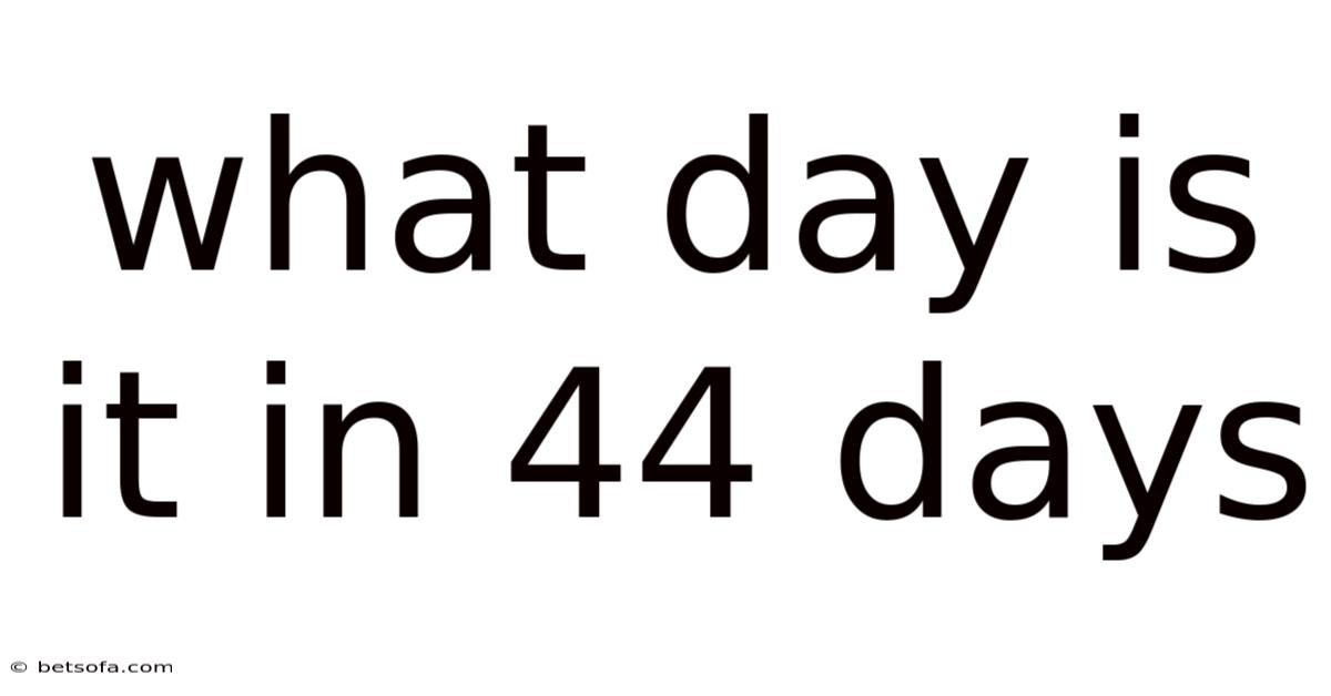 Calculating what day it will be in 44 days is a straightforward process once you understand the underlying principle of modular arithmetic and the structure of our calendar. By dividing 44 by 7 and using the remainder to count forward from today, you can accurately determine the future weekday. So this skill is not only practical for personal planning but also demonstrates the fascinating intersection of mathematics and everyday life. Whether you're scheduling an event or simply satisfying your curiosity, you now have the tools to confidently answer, "What day is it in 44 days?