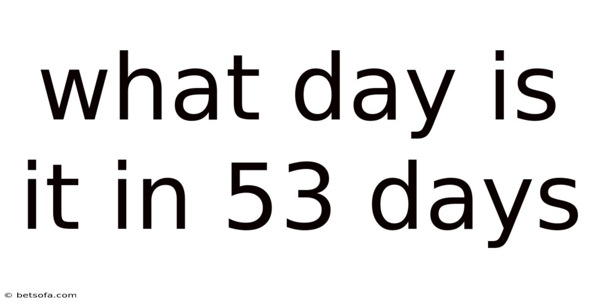 The number 53 is significant because it does not divide evenly into weeks. Since a standard week consists of 7 days, 53 days is equivalent to 7 full weeks and 4 additional days (7 x 7 = 49; 53 - 49 = 4). Put another way, whatever day of the week it is today, the day 53 days from now will be four days later in the week. Now, for example, if today is a Monday, 53 days from now will be a Friday. Understanding this weekly shift is crucial for planning business operations, as a deadline falling on a Friday might require different preparation than one falling on a Tuesday The details matter here..