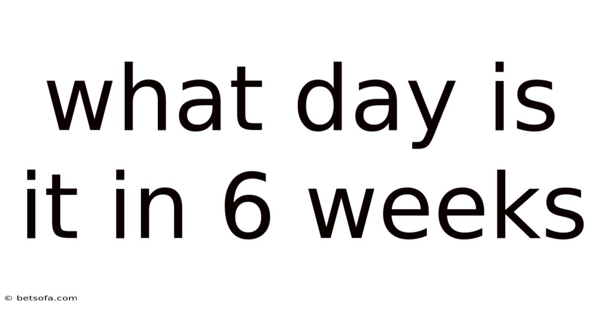 What day is it in 6 weeks? This seemingly simple question can carry significant weight depending on the context in which it is asked. Still, whether you’re planning a personal event, managing a professional deadline, or simply trying to organize your schedule, knowing the exact day of the week in 6 weeks can be crucial. The phrase "what day is it in 6 weeks" refers to the specific day of the week that will occur 42 days from the current date. Now, this calculation is rooted in the standard 7-day week structure, where each week consists of Monday through Sunday (or Sunday through Saturday, depending on regional or cultural conventions). Understanding this concept is not just about arithmetic; it involves recognizing how time is measured, how calendars function, and how human activities are often tied to specific days That's the part that actually makes a difference. Took long enough..