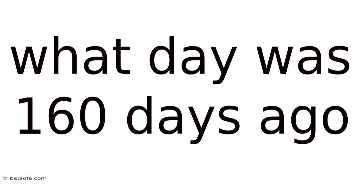 What day was 160 days ago is a question that might seem simple at first glance, but it carries a surprising amount of complexity when examined closely. This query is not just about subtracting days from a calendar; it involves understanding time measurement, calendar systems, and the practical implications of knowing specific dates. So whether you’re planning an event, reflecting on past occurrences, or simply curious about temporal calculations, determining the exact day 160 days prior to today requires a methodical approach. Still, the term "160 days ago" refers to a specific point in time that is 160 days before the current date. This concept is rooted in the Gregorian calendar, which is the most widely used system for tracking days, months, and years globally. Still, the calculation can vary slightly depending on factors like leap years, time zones, and the starting point of the count. Understanding what day was 160 days ago is not only a mathematical exercise but also a reflection of how we organize and interpret time in our daily lives. This article will explore the nuances of this calculation, its real-world applications, and common pitfalls to avoid Worth knowing..