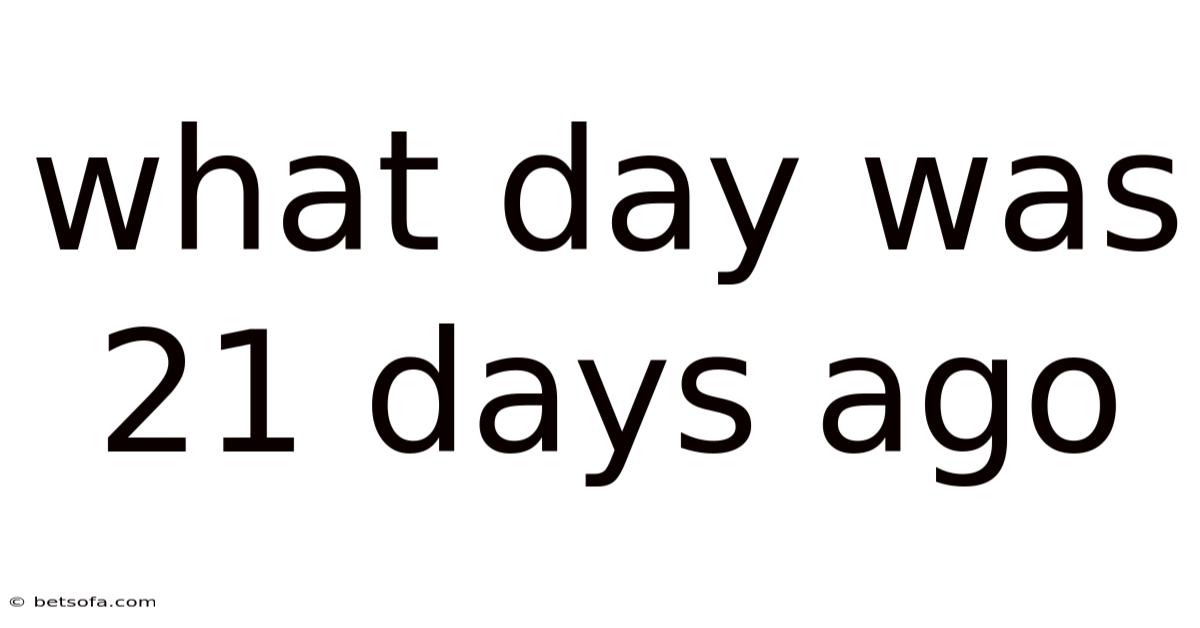 Calculating what day it was 21 days ago might seem like a simple task, but it's actually a great example of how we use basic arithmetic in our everyday lives to figure out time. In this article, we'll explore how to determine the date 21 days ago, why this kind of calculation matters, and how you can apply this skill in various situations. Still, whether you're tracking deadlines, planning events, or just curious about a past date, knowing how to count back days accurately can be surprisingly useful. By the end, you'll have a clear understanding of how to calculate past dates and why this skill is more valuable than you might think Still holds up..