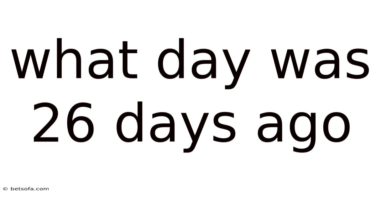 At its core, asking what day was 26 days ago is about navigating the repeating pattern of the week. A week consists of seven days, so every seven days the cycle restarts. When you subtract a number of days that isn’t a multiple of seven, you shift your position within that cycle. The key insight is that the remainder after dividing the number of days by seven tells you how many days forward or backward you move in the weekly sequence Simple, but easy to overlook. That's the whole idea..