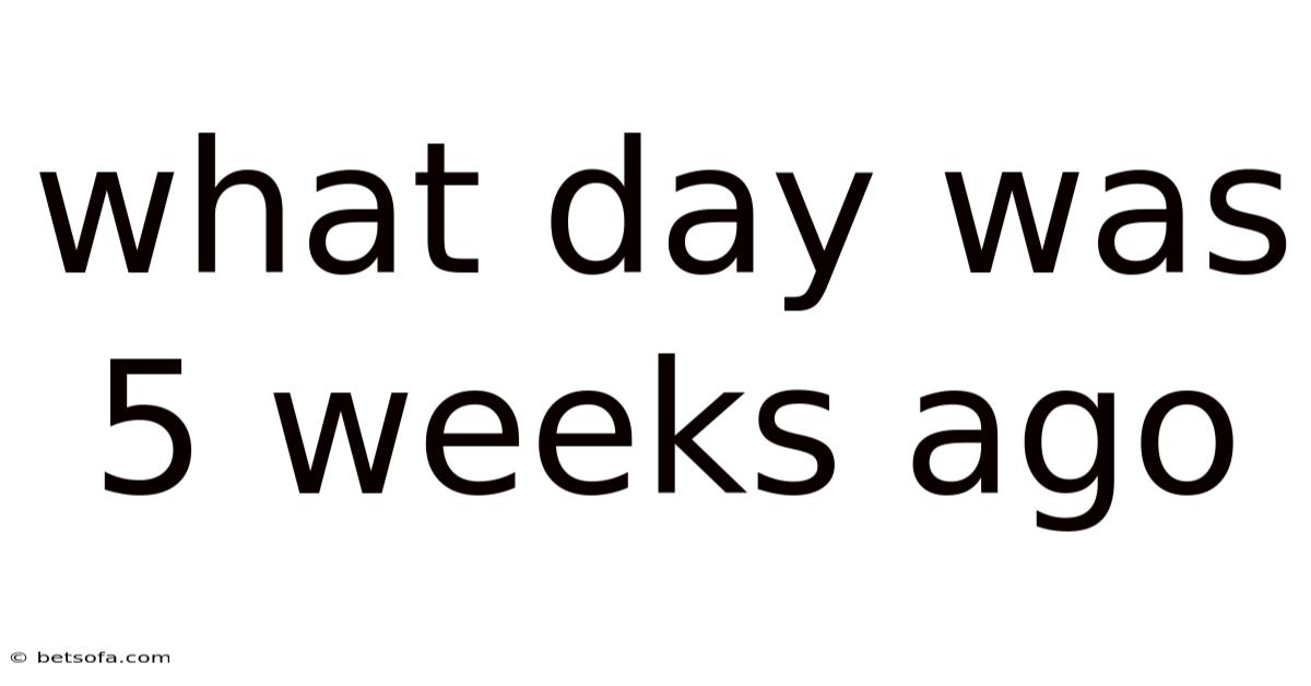 In today’s fast-paced world, understanding time is more important than ever. On the flip side, the concept of time shapes how we plan our days, manage our responsibilities, and even reflect on our past experiences. One specific question that often arises is: what day was 5 weeks ago? In practice, this seemingly simple inquiry can hold significant value in various contexts, from personal reflection to professional planning. Whether you're trying to track your progress or simply want to understand how time works, this article will provide you with a thorough explanation of what day was 5 weeks ago.